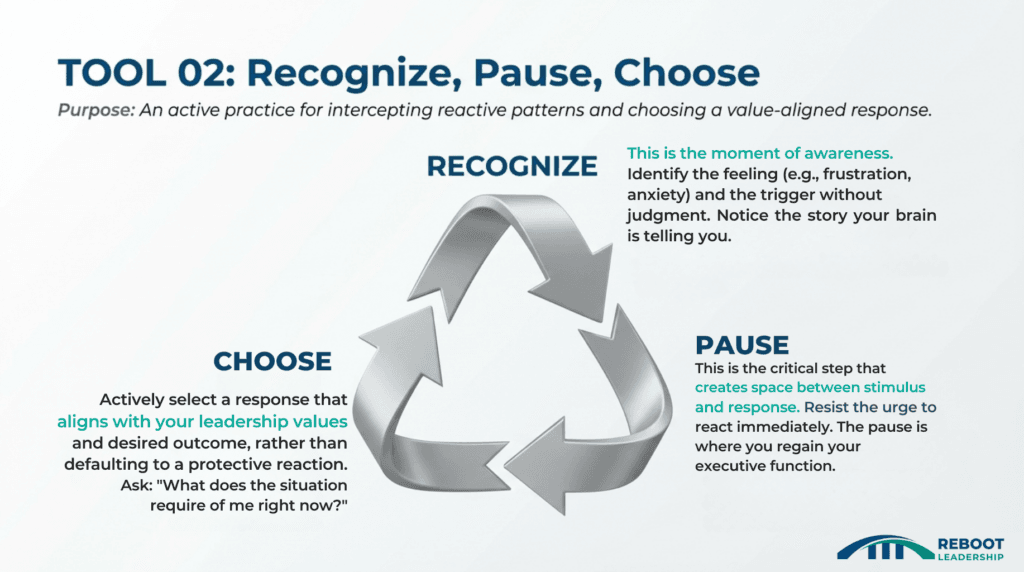 - For a specific 5-step tool to use in the “Pause” moment, see “The Leader’s RESET.”